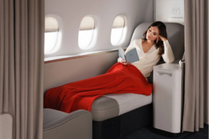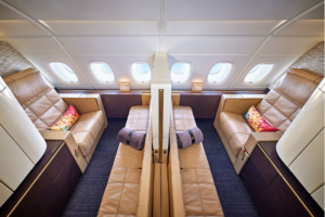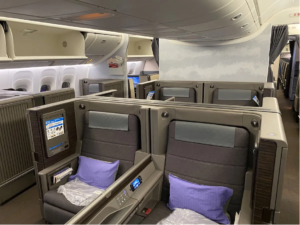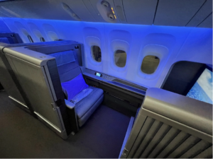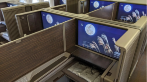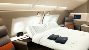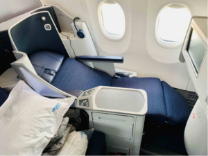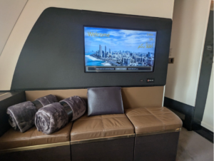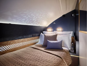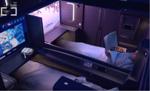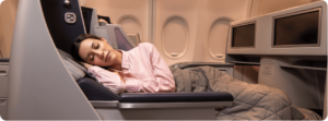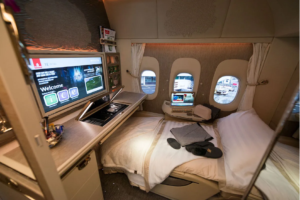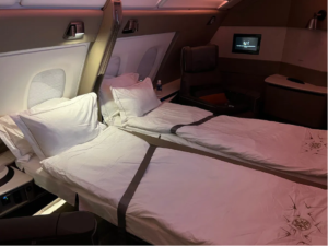 No interference. No interruptions. Simply your space alone. Honestly, it is one of the most comfortable sleeping arrangements you will ever see in any airplane.