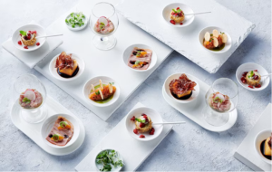 You may see dishes such as lobster, foie gras, caviar, or beautifully prepared meat and fish dishes, among others. Everything is set on your plate like you are dining in a fine restaurant. White tablecloth. The proper cutlery. Your crystal glassware, too.