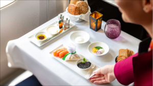 If you have even a bit of an interest in food, this part will truly stand out. Dining in La Première isn’t merely ‘decent for a plane.’ It’s actually very special indeed. Menus are devised by head chefs, including Alain Ducasse, and they change as the seasons progress.
