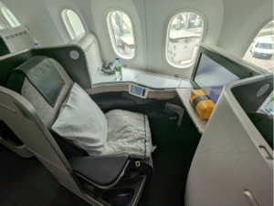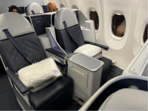 The crew really arrives and gets everything set up for you, too. They add a mattress top layer, a real duvet, and a very large pillow. Suddenly, it will no longer be your seat. It will be a rather true bed itself.
