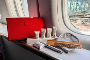 This is really where La Première focuses on luxury. You’ll receive an amenity kit from Sisley Paris, full of luxurious skincare products. It really feels much like something you would purchase rather than getting on a flight itself.